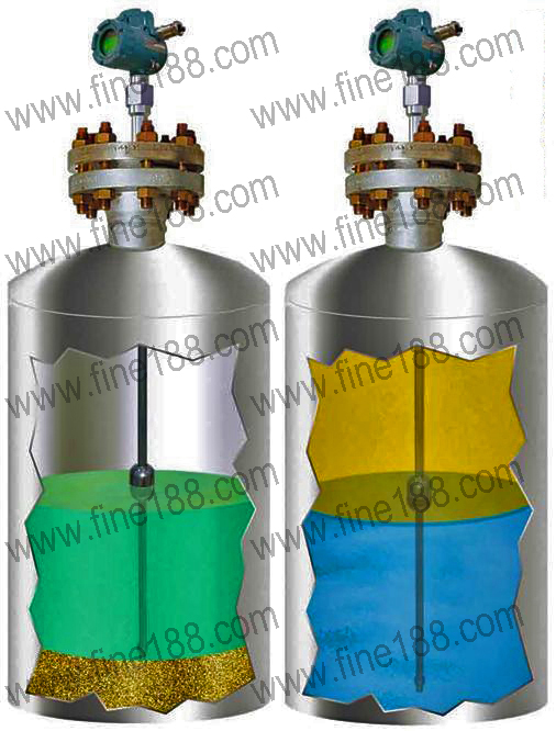 ● 容器内液面与介面体积的液位信号可按比例显示。