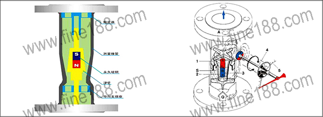流量的测量是由指示器内的变送器通过偶合磁钢感受浮子位置的变化来完
